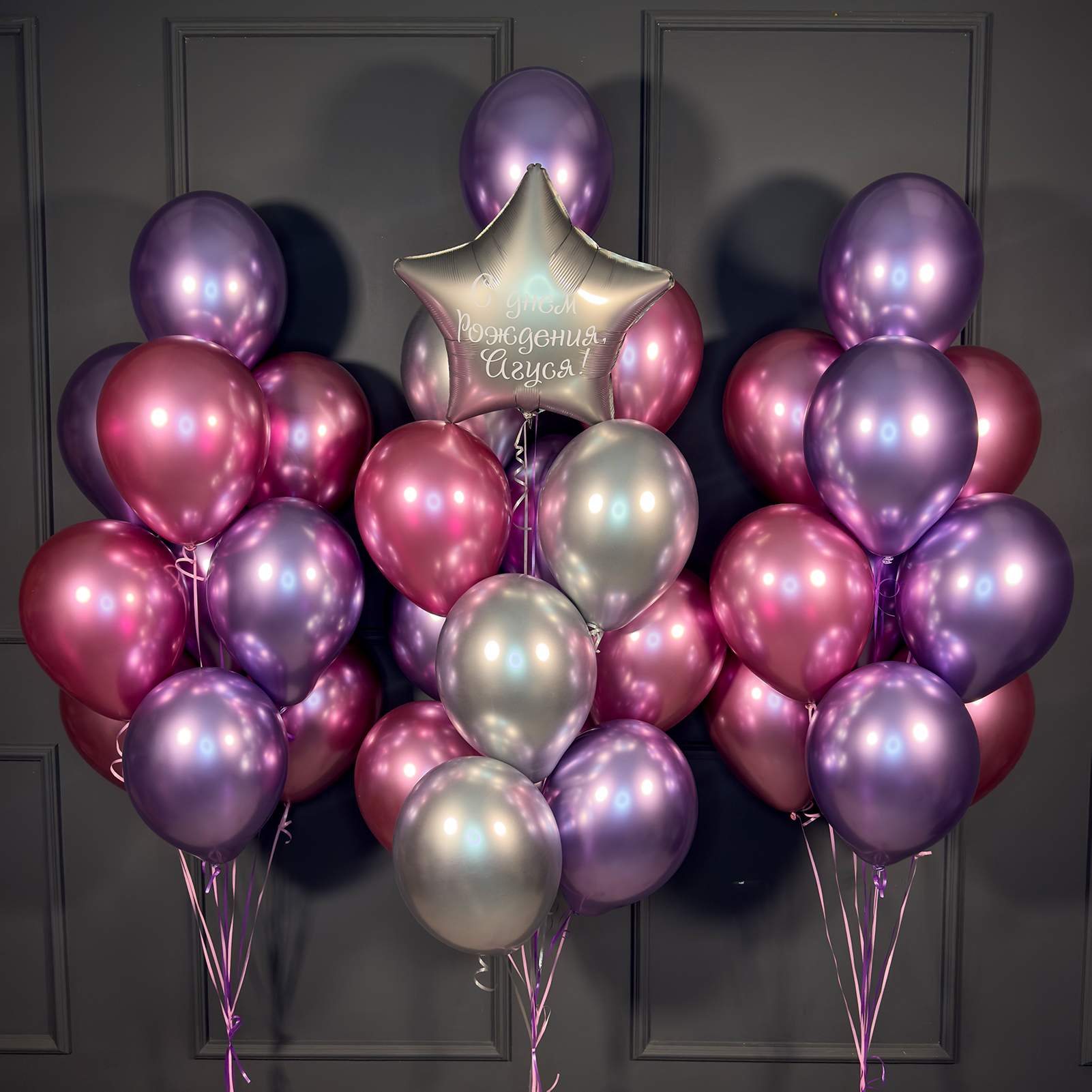 Хромированные сиреневые, серебряные и фуксия шарики 35 см – 12 шт