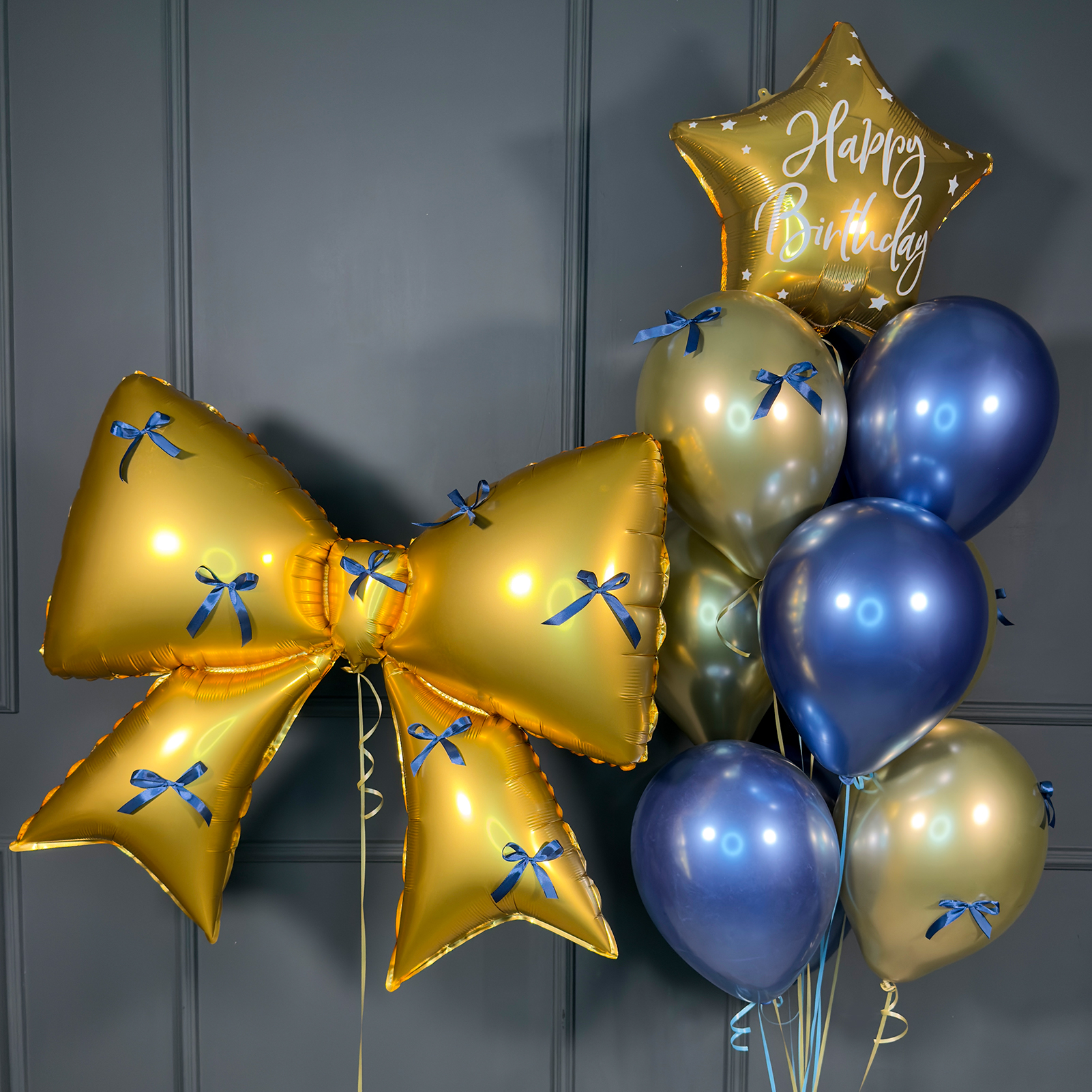 Латексные золотые и синие хромированнае шарики 35 см – 9 шт