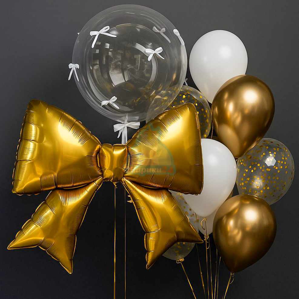 Фольгированная фигура золотой бант 100 см – 1 шт